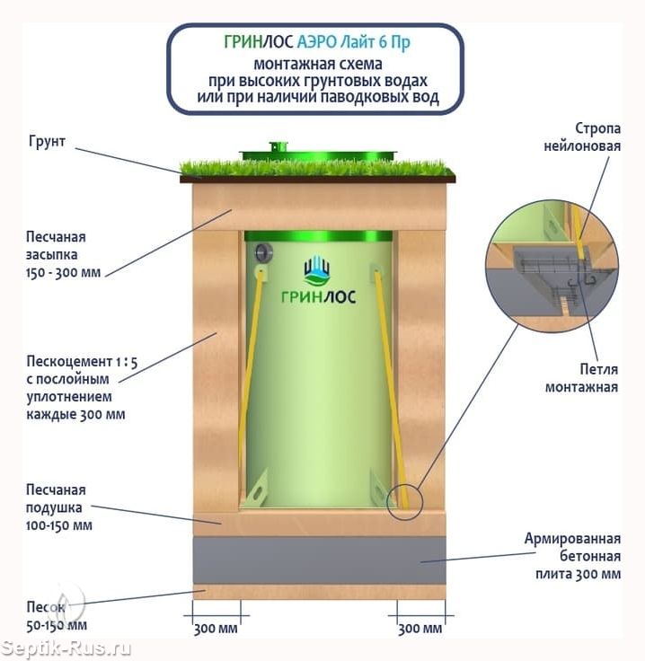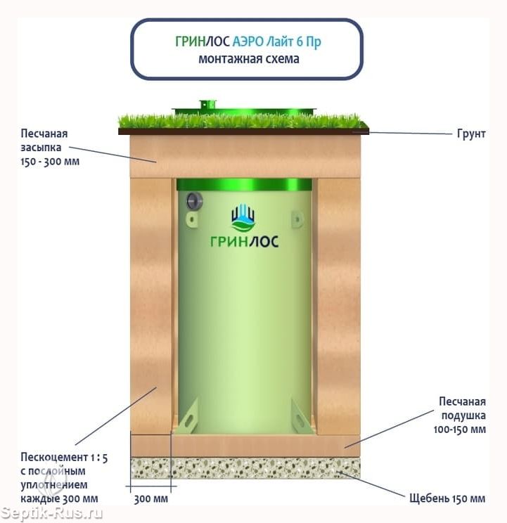 Перед непосредственным монтажом Гринлос Аэро Лайт 6 Пр специалисты осуществляют подготовку котлована. Его размеры определяются конструктивными особенностями выбранной модели оборудования.