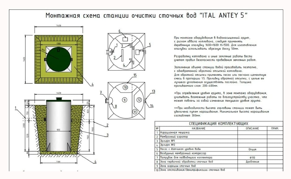 - Объём переработки: 1 м3/сут