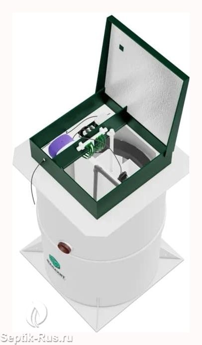 - Разделение активного ила и осветлённой воды. Активный ил перекачивается обратно для повторного использования, а очищенный сток готов к удалению из септика Малахит 4.